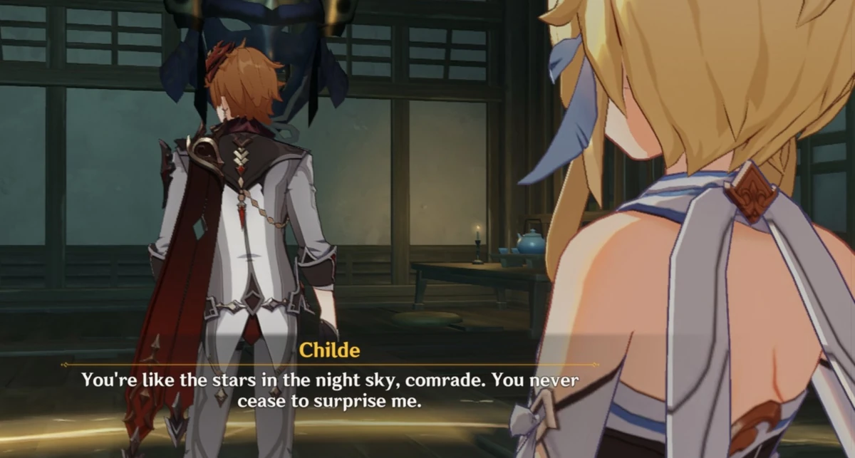You and Childe were inseparable. Yns parents murdered yn. Diluc Childe Kazuha Thoma.